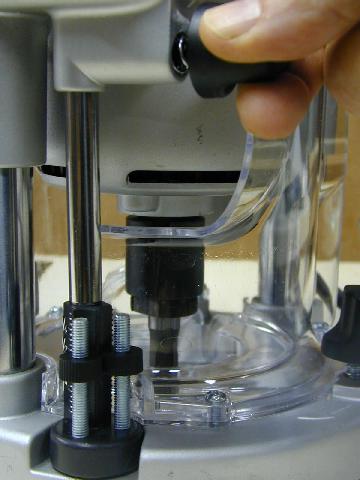 handle or the fine adjustment knob have any effect on the router. You simply plunge